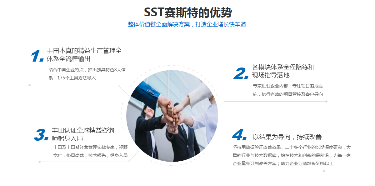 賽斯特集團(SST)是豐田為背景的一家致力于企業(yè)管理咨詢、培訓服務為主的國際化管理咨詢機構,依托于精益發(fā)源地豐田公司為背景的專家團隊,專業(yè)從事精益生產培訓和咨詢服務的管理咨詢機構,中國本土唯一一家融合日本豐田,北京現代,韓國三星等專家為一體的咨詢機構。旗下擁有:天津賽斯特企業(yè)管理咨詢公司,天津眾益天成管理咨詢公司,北京冠群精益管理咨詢公司,天津精益智能咨詢有限公司等四家分支機構。